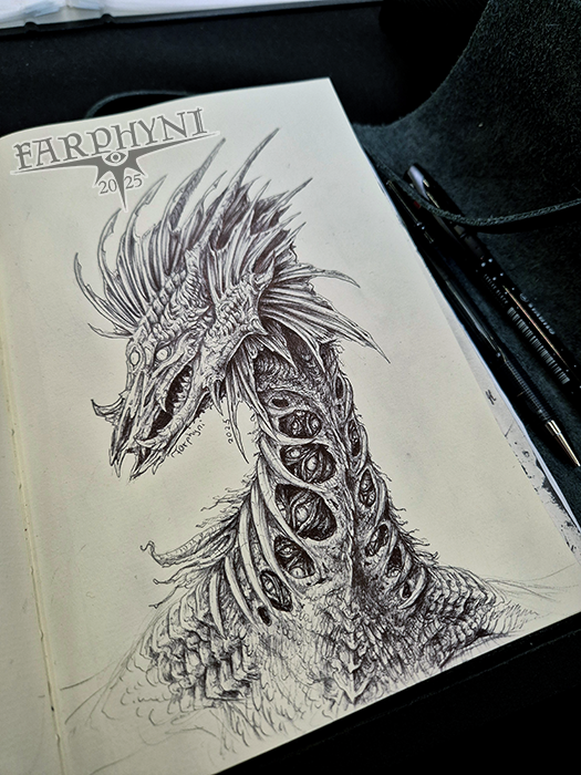 Another convention sketch from last year. This one features a swamp lurker (though I call them swamp puppies). If you’re walking through the misty swamps and feel watched – let me assure you, you are being watched. But no worries, these critters are vegetarians and are, despite their appearence, quite friendly if you bring some snacks.